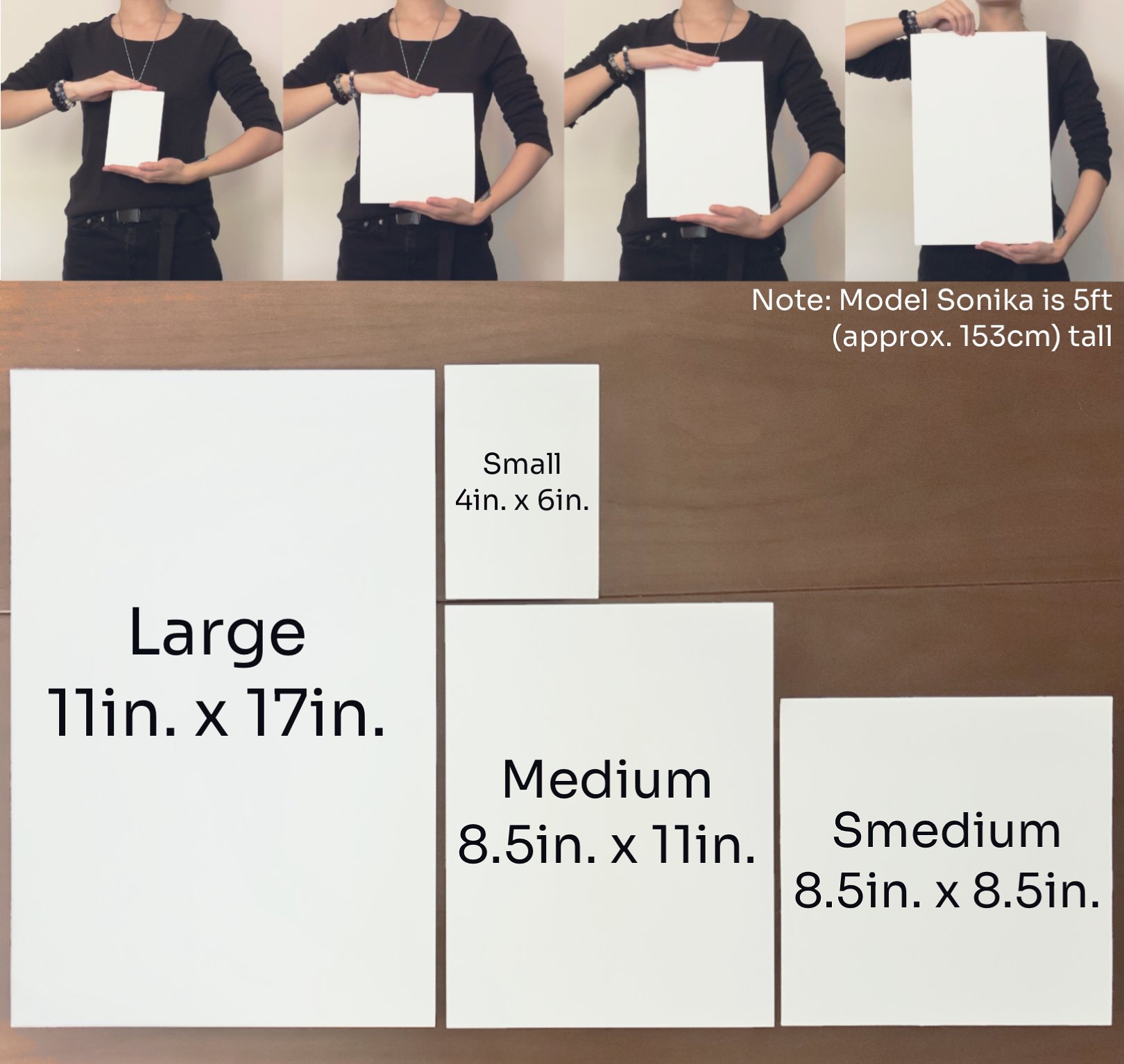 Paper Weight: 88LB Polar Matte (Small/Post Card), 66LB Polar Luster Metallic (Medium and Large)