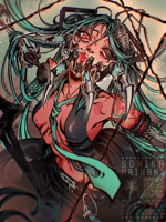 Original concept/art by Deino as their OC of a mechanized skeleton wearing a Miku case or suit. Officially recognized as a Hatsune Miku derivative by Crypton. Most popular appearance being the music video for Bacterial Contamination (Saikin Osen / 細菌汚染) by producer Kanimiso-P (mathru).
