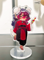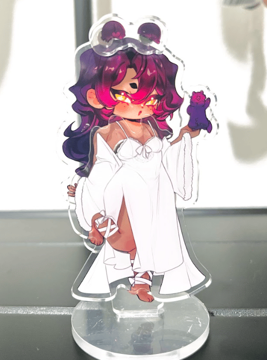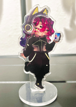 An acrylic standee of Lucian ready to be dressed up in a couple of different outfits!